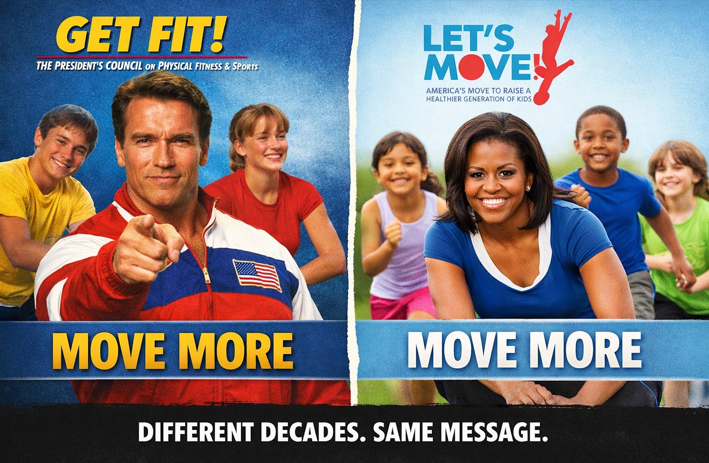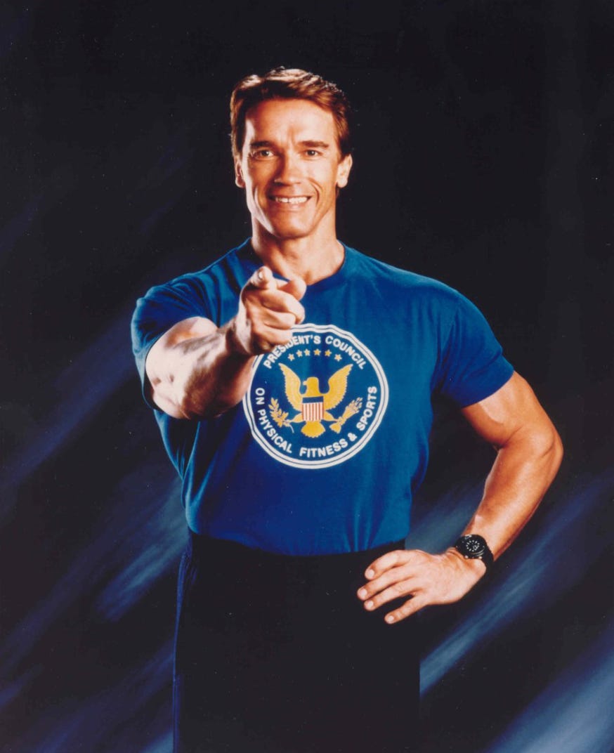 Back in the early 1990s, under George H. W. Bush, Arnold Schwarzenegger helped promote national fitness efforts as Chairman of the President’s Council on Physical Fitness and Sports—encouraging Americans, especially kids, to be more active.