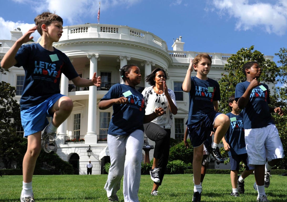 Decades later, Michelle Obama, through Let’s Move!, again emphasized both nutrition and activity… but the message that stuck most publicly?